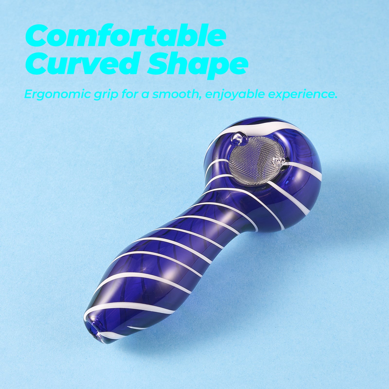 Striped Glass Pipe – Comfortable Hold (Blue)