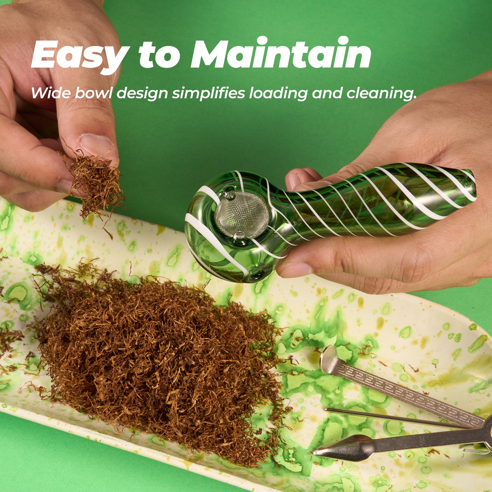 - Premium Materials: Handcrafted from thick, non-toxic glass, it is corrosion-resistant, heatproof, and odourless, ensuring a clean and pure herbal smoking experience