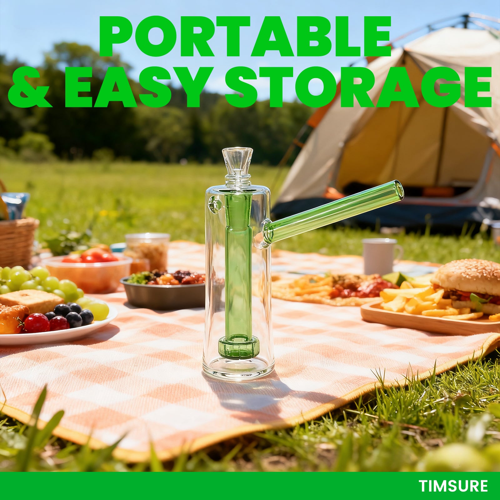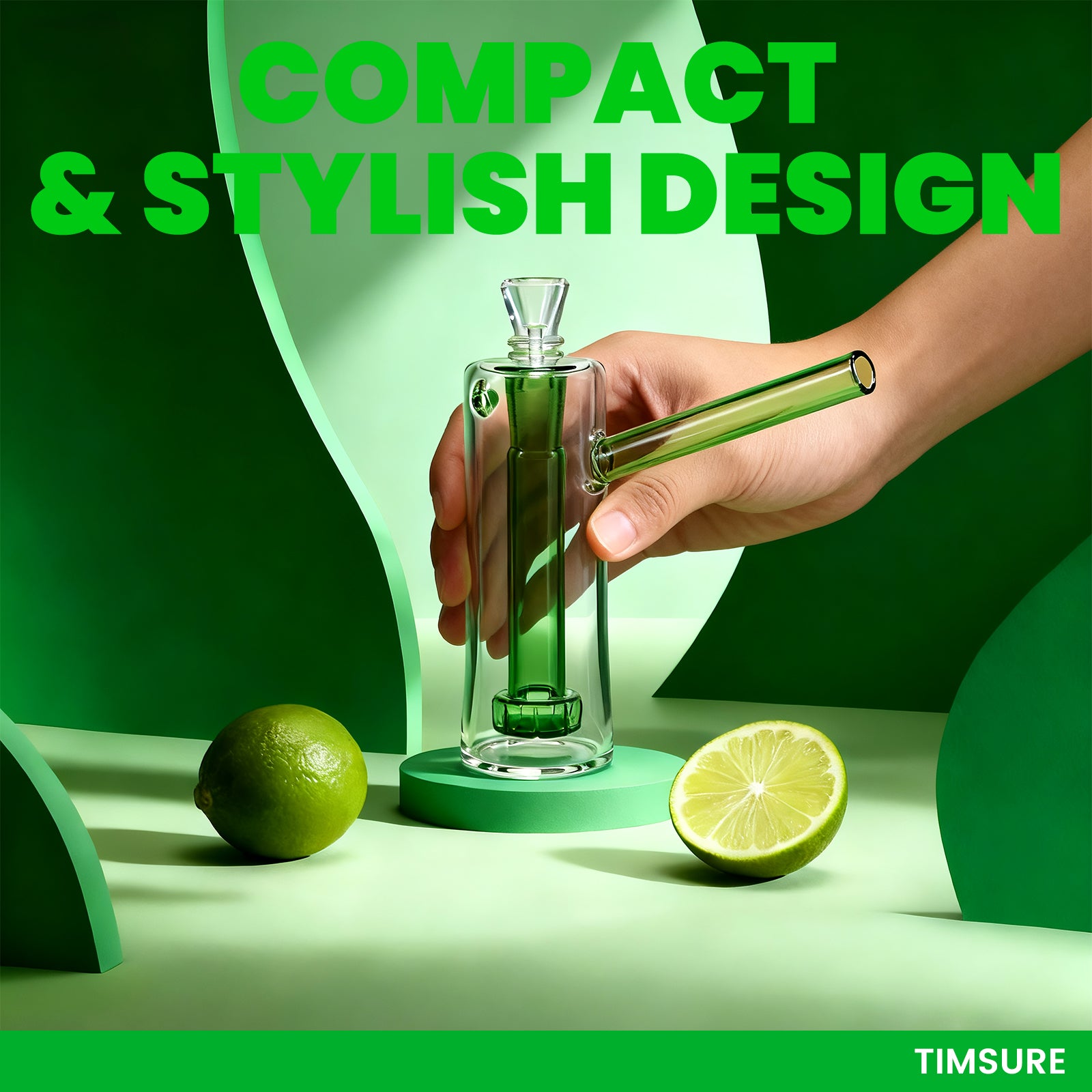 - Compact Glass Bong – 13.5 cm borosilicate glass bong with dual-tone green and clear chamber, ideal for stylish water bong use